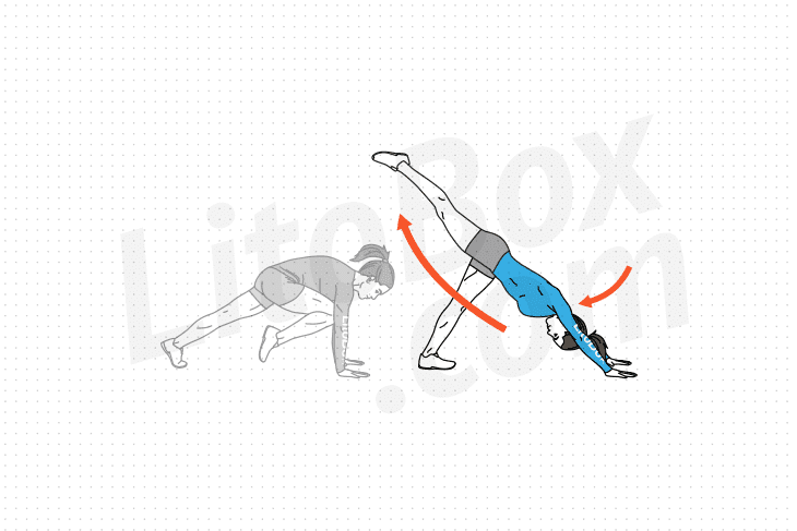 Le chien tête en bas jambe levée ou le chien à 3 pattes ou downward dog crunch en anglais est un exercice de musculation emprunté au yoga.