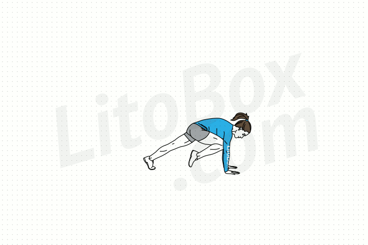 - Simultanément levez les hanches et pousser sur vos mains au sol pour aligner la jambe, les hanches, le buste, le cou et les bras (éloignez les épaules des oreilles)