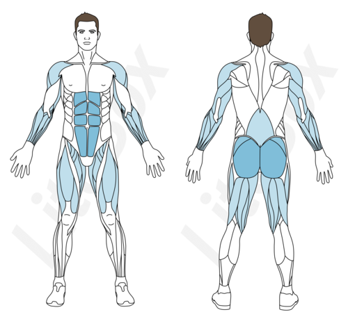 Les principaux muscles travaillés pour les chiens tête en bas avec 1 jambe levée sont les abdominaux et les fessiers.