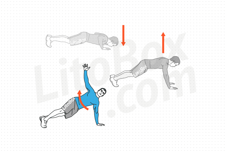 Les pompes en T sont des variations de pompes qui combinent pompe complète et gainage latéral. Cet exercice renforce les abdominaux en plus des triceps, des épaules et des pectoraux.