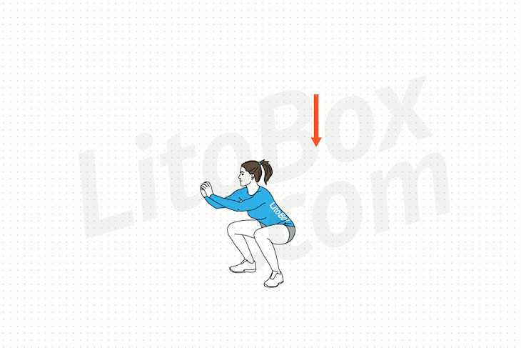 Notes : Ne baissez pas le buste vers l’avant en amortissant le saut, baissez les fesses et pliez les jambes en maintenant le dos droit. Surveillez la répartition de votre poids sur vos pieds (talon, plante et pointe), vous ne devez pas être sur la pointe des pieds (les talons restent au sol) !