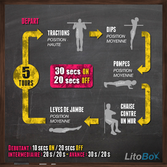 | Débutant | 10 secondes de travail 20 secondes de repos |