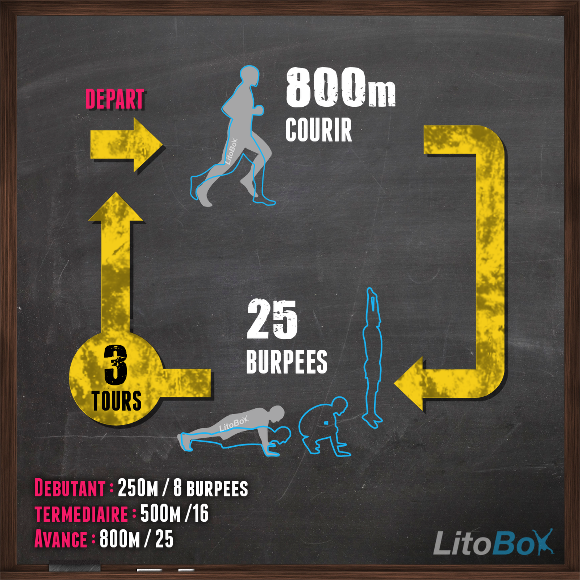 | Intermédiaire | courir 500 mètres 16 burpees |