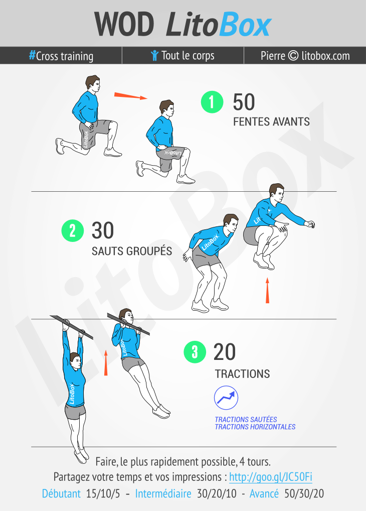 | Avancé | 50 fentes 30 sauts groupés 20 tractions |