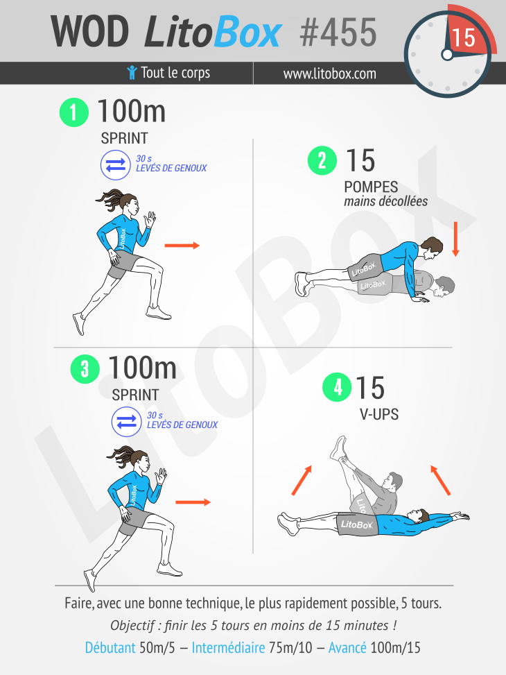 | Avancé | 100m sprint / 15 reps |