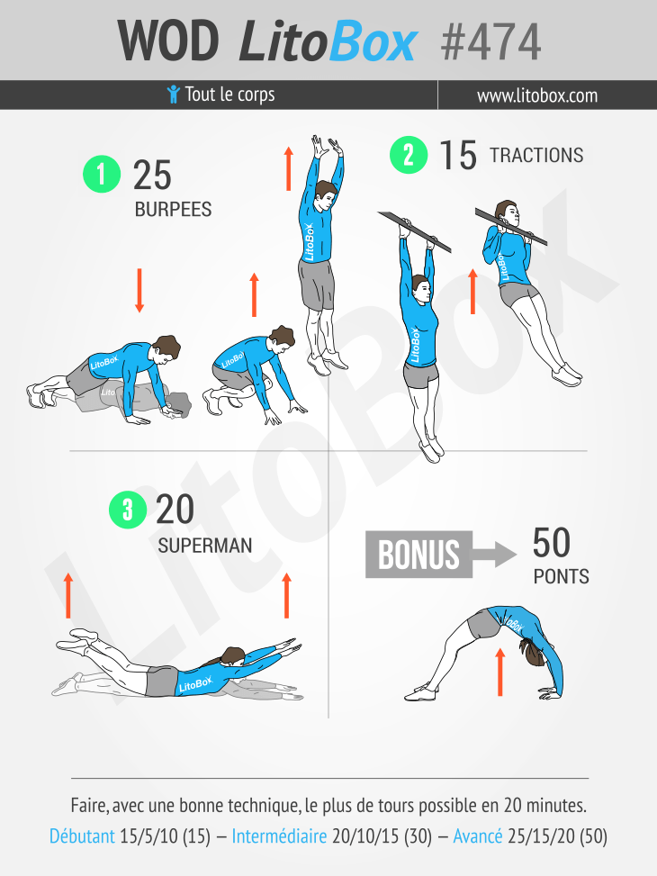 | Avancé | 25/15/20 (bonus 50 reps) |