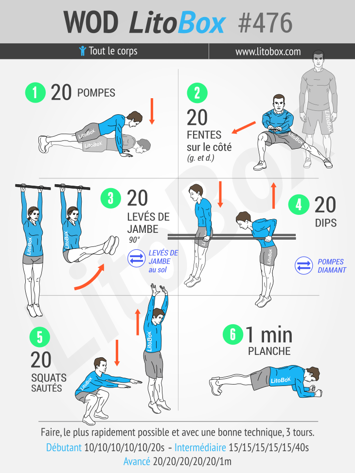 Tout premier WOD (de Litobox et en général) pour moi. Les squats sautés m’ont fait terriblement mal, j’ai encore des courbatures 3 jours après :D.