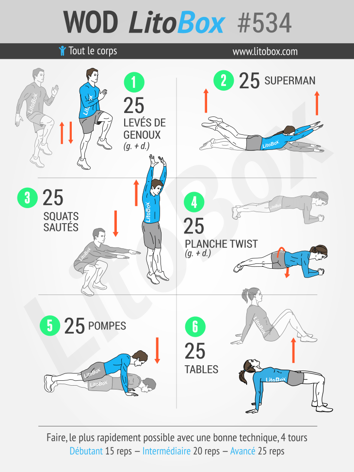 Salut Pierre, wod fait en 28min en mode À. Je suis trempé, dur dur les planches twist. J aurais pas cru, en plus pour enchaîner les pompes après c’est chaud. Par contre un peu mal au milieu du dos après. Ah au fait tu pourras nous remettre des étirements ? Merci et reste comme t’es ton site est ai Top.