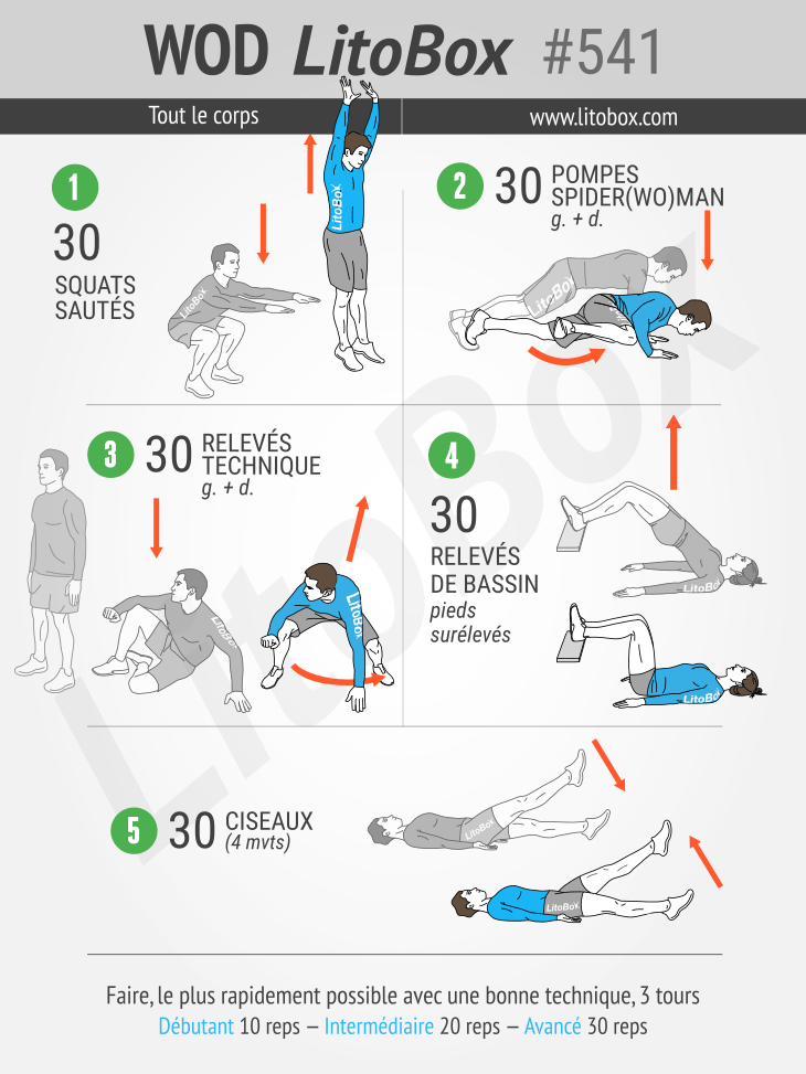 Première fois que j’effectue un WOD Litobox car je travaille depuis plus de 2 ans avec FIZZUP. WOD effectué en I en 16’30 mais en remplaçant le relevé technique par sortie du dos. C’est bon pour le souffle et pour transpirer. Je vais essayer de continuer en mode I en espérant finir en mode A.