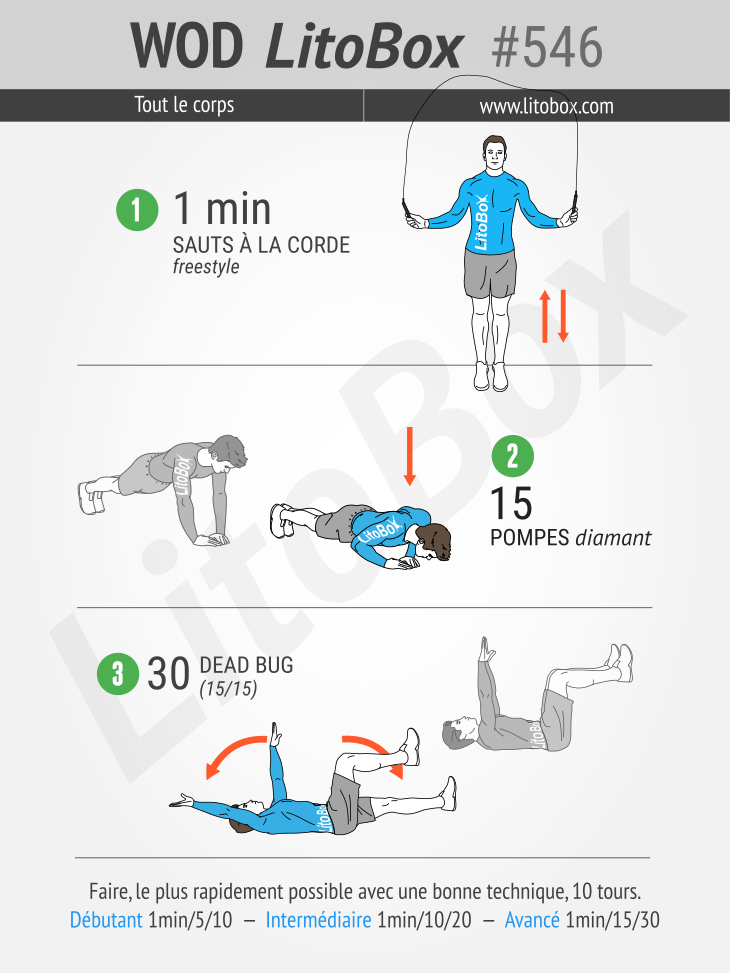 Si tu n’as pas de corde à sauter aujourd’hui → jumping jacks;