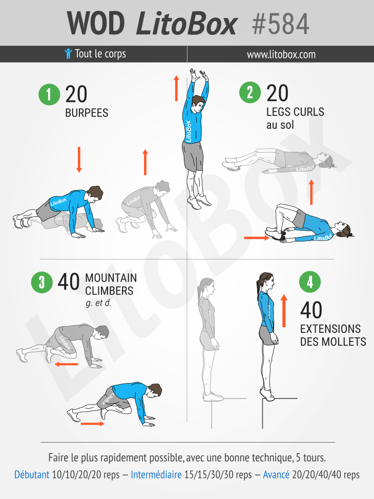 Et mine de rien (ou pas 😊 ) à la fin ça fera quand même 100 burpees, 100 legs curls, 200 mountain climbers et 200 extensions des mollets 💪.