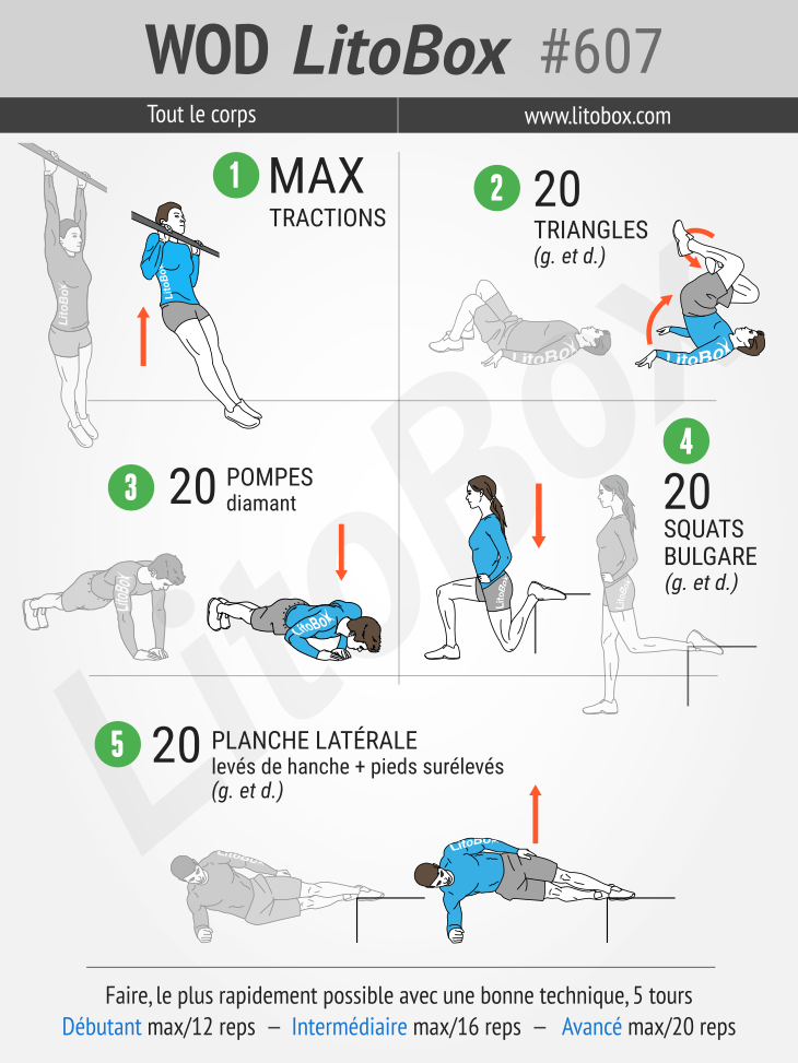 5 tours en 30 min piles — > mode A sauf pour les tractions (5 à 8 rep sur barre).