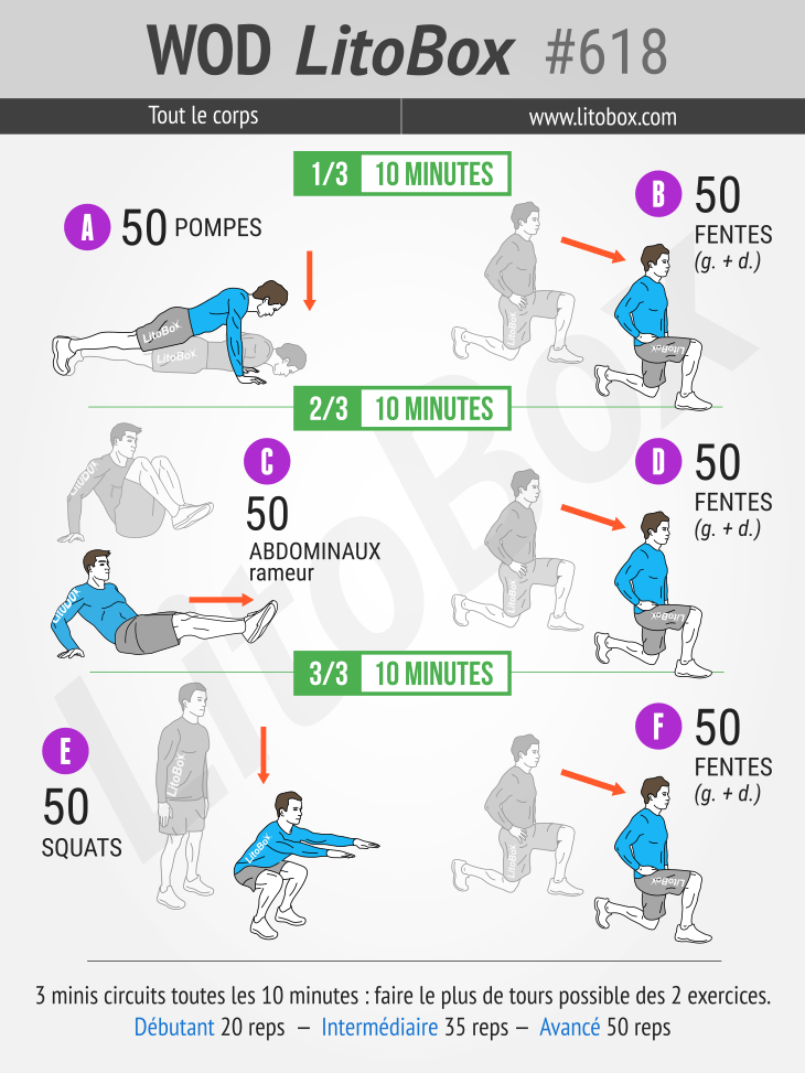 2 tours + 50 squats + 26 fentes