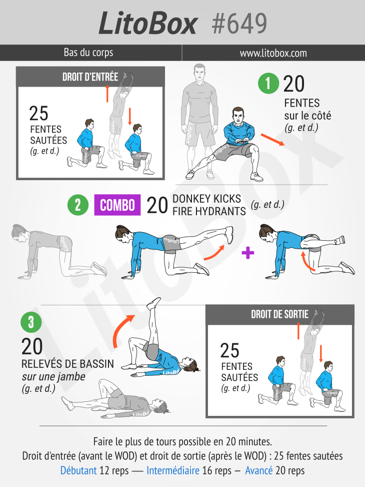 - COMBO 20 donkey kicks + fire hydrant (à gauche et à droite);