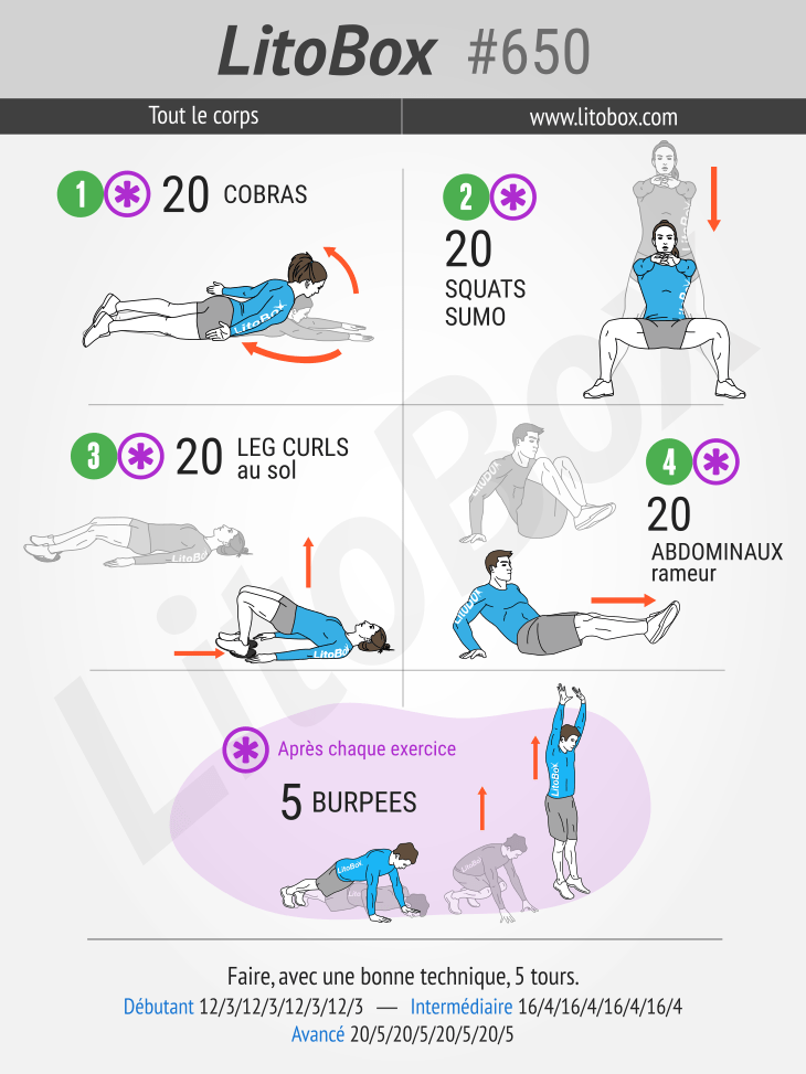Soit 300, 400 ou 500 répétitions en tout selon le niveau 💪.