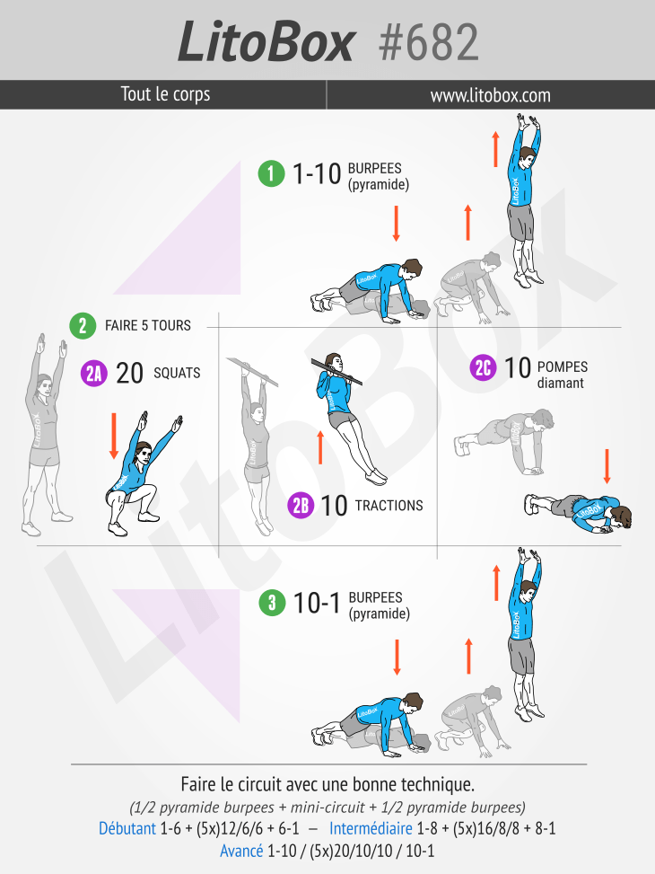 - pyramide : 1-2-3-4-5-6-7-8-9-10 burpees