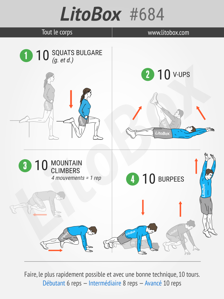- 10 mountain climbers (4 mouvements = 1 répétition)
