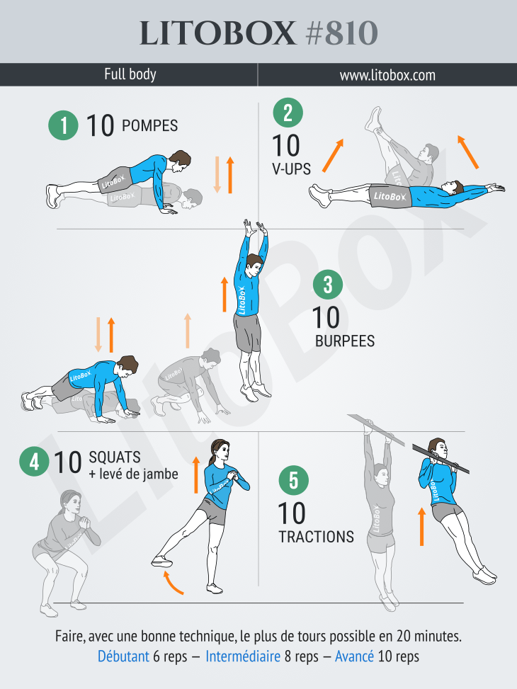 En intermédiaire 8 tours + les pompes, les abdos et les burpees.