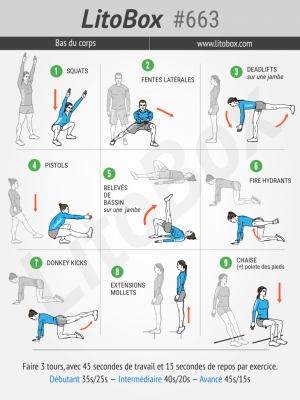 Entraînements rapides et efficaces au poids du corps ciblés sur les cuisses, hanches, fessiers et mollets. Ces programmes conviennent aussi bien aux femmes qu’aux hommes et sont réalisables chez soi.